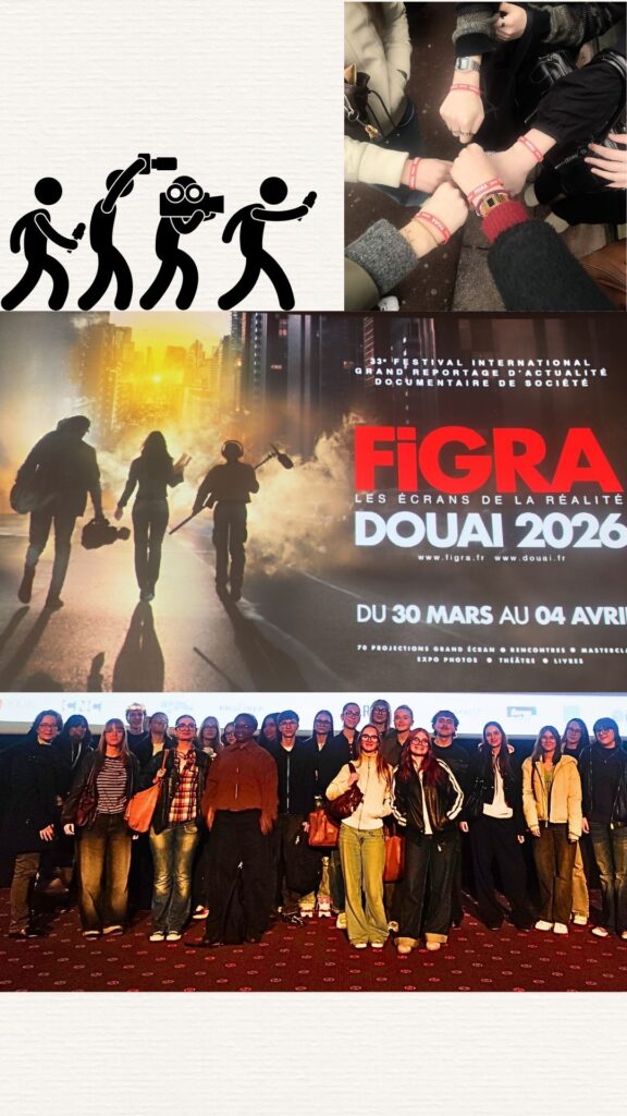Le groupe Terminale HGGSP2, accompagné par Mmes Fresquet et Marquet, ont assisté à une journée de projection dans le cadre du FIGRA (Festival International du Grand Reportage d’Actualité). Au cinéma le Majestic de Douai, ils ont pu découvrir 4 reportages aux formats et sujets variés, touchant à des sujets géopolitiques et sociétaux. Les échanges vécus avec les journalistes ont été nourris, les jeunes ont posé des questions pertinentes sur l’éthique journalistique, les choix réalisés, les contraintes du terrain. Une belle expérience d’éducation aux médias, prise en charge financièrement par le Pass Culture collectif du lycée, et la région Hauts de France !