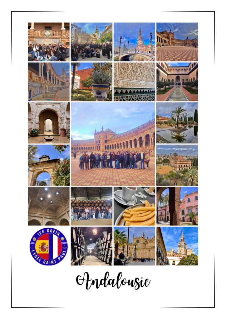 15 élèves de seconde ont vécu la première partie de leur échange avec l’Andalousie à Jerez de la Frontera. Malgré une météo capricieuse ils ont pu créer des liens forts en assistant à des cours, en visitant la ville de Séville ( sa magnifique place d’Espagne et son Alcázar) et de Jerez ( son centre ville, ses caves et dégustation de churros con chocolate) en partageant des moments de convivialité lors de repas avec leurs correspondants et leur famille ou encore d’une sortie bowling et ont même vécu une journée confinée en faisant des ateliers cuisine ou en découvrant le flamenco et les tenues traditionnelles. Un séjour bien rempli ! Hâte de vous partager l’accueil de nos amis espagnols.